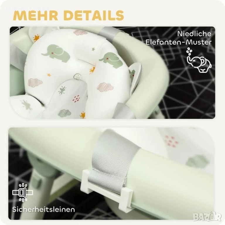 AIYAPLAY Бебешка вана, Сгъваема, Неплъзгаща се основа, Възглавница за вана Слон, 86 x 53 x 25,5 см, Зелена - 80.00лв.
