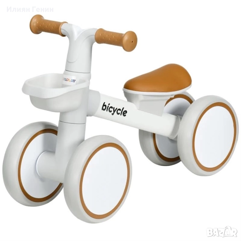 Велосипед за баланс AIYAPLAY, регулируема седалка, шепнещи колела, за 1-3 години, до 20 кг, кафяво/бяло - 50.00лв.