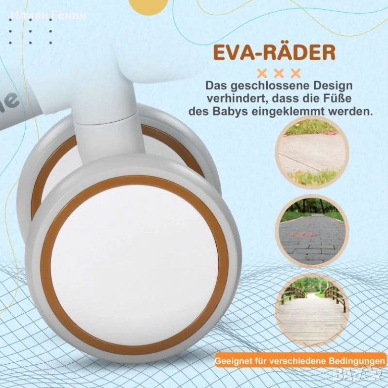✔ Изключително тихи гуми на детския балансиращ велосипед, подходящи за употреба на закрито и на открито