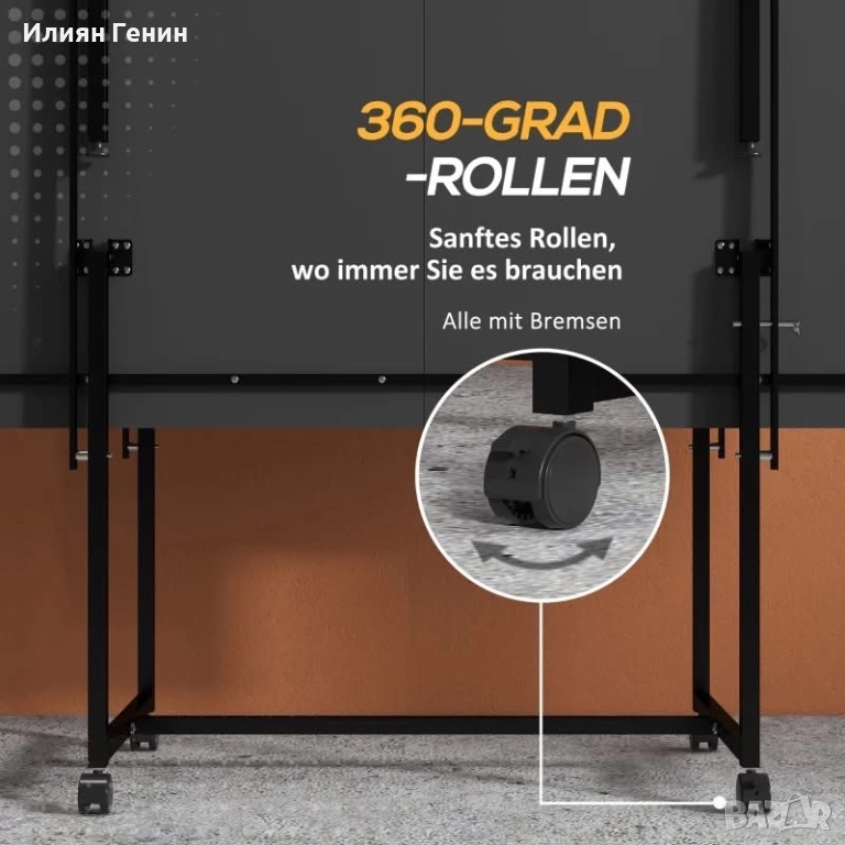 ✔ Четири колелца със спирачки за лесно движение и стабилна стойка