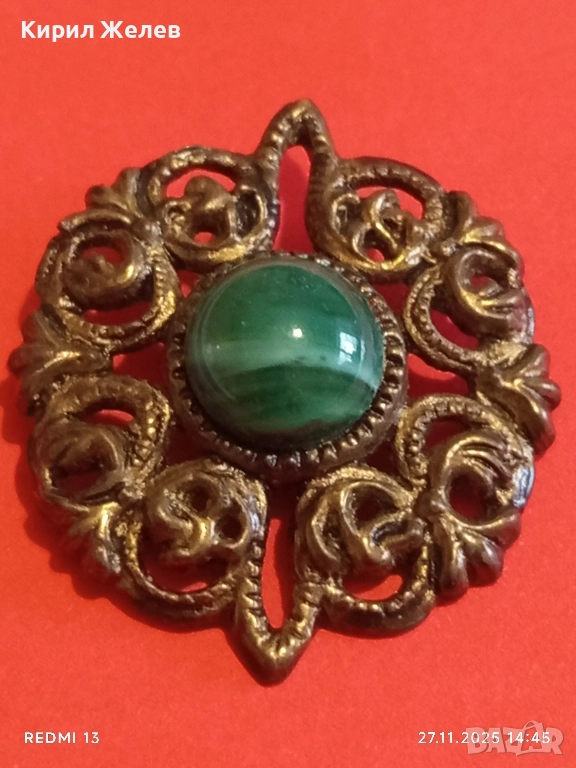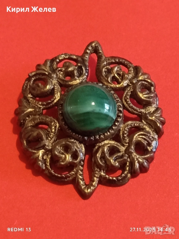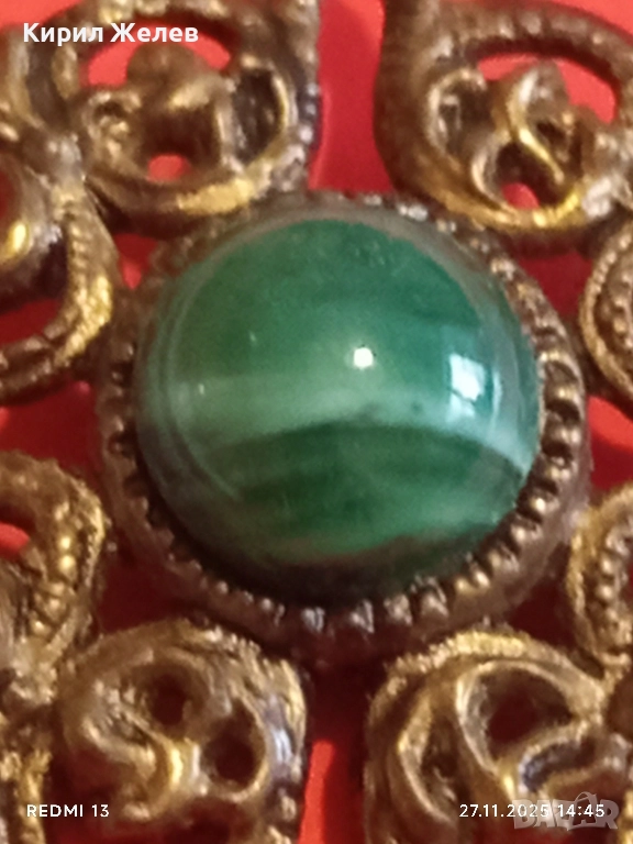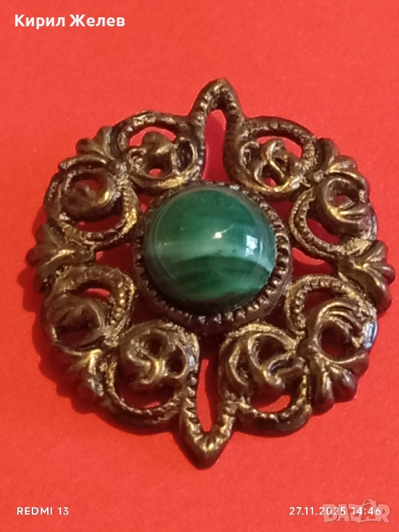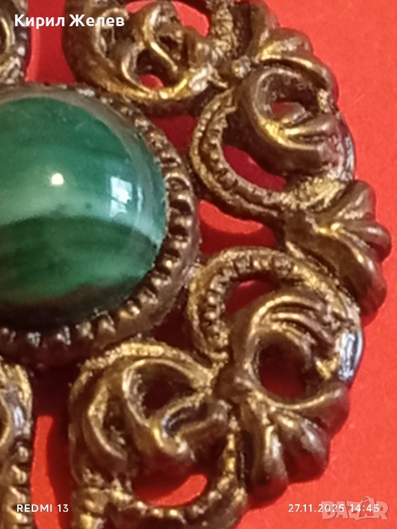 СТАРИННА БРОШКА АРТ ДЕКО СТИЛ СКЪПОЦЕННА с ЗЕЛЕН АХАТ 52224