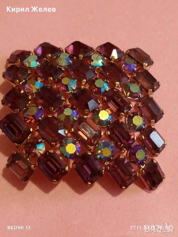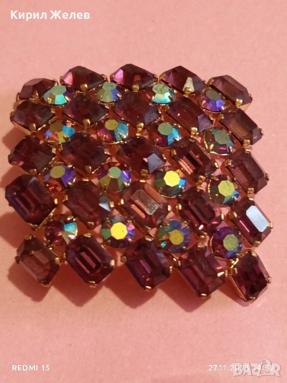 Кристална брошка АМЕТИСТ АРТ ДЕКО стил 31130