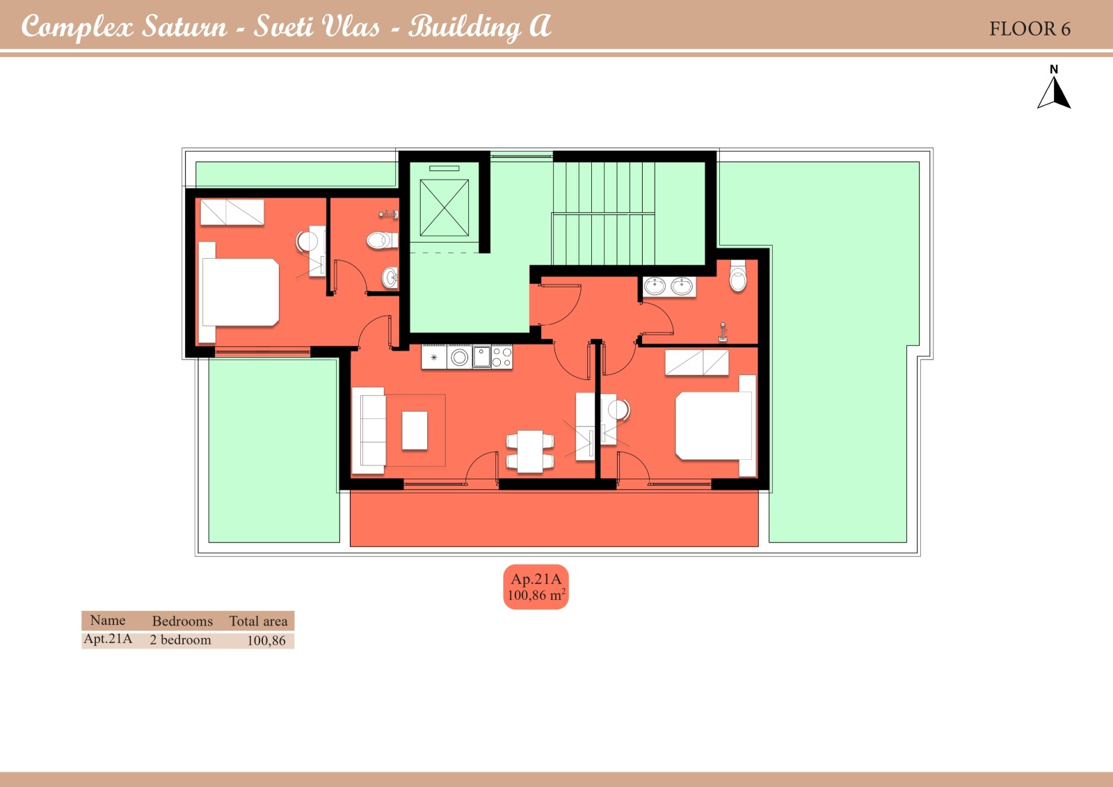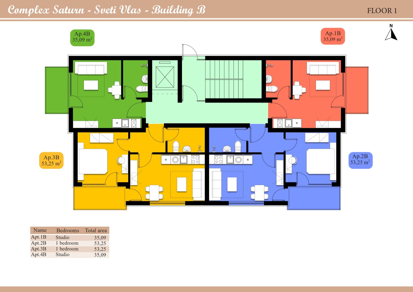Комплексът предлага различни типове апартаменти: от уютни студиа до просторни апартаменти с една и две спални. Всички апартаменти са проектирани с внимание към детайла, за да осигурят максимален комфорт, функционалност и естетическа хармония.