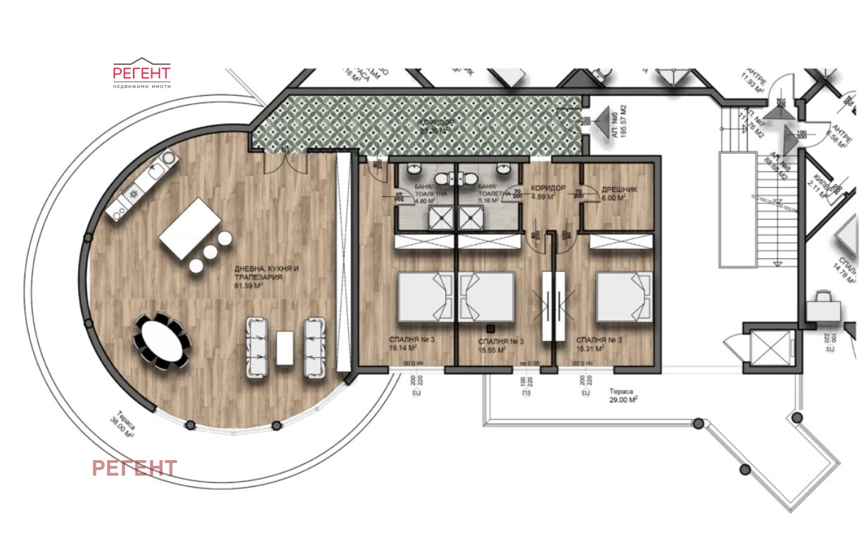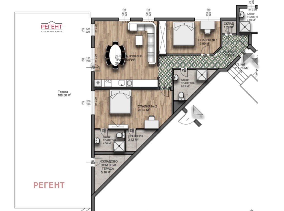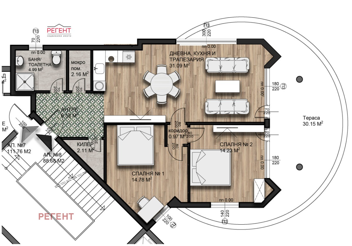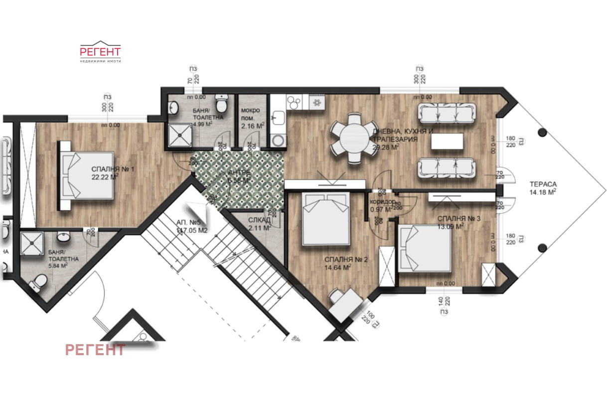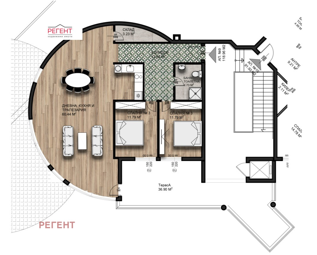 Сградата ще е с луксозни общи части и асансьор, като предлага разнообразие от функционални жилища, подходящи както за живеене, така и за инвестиция.