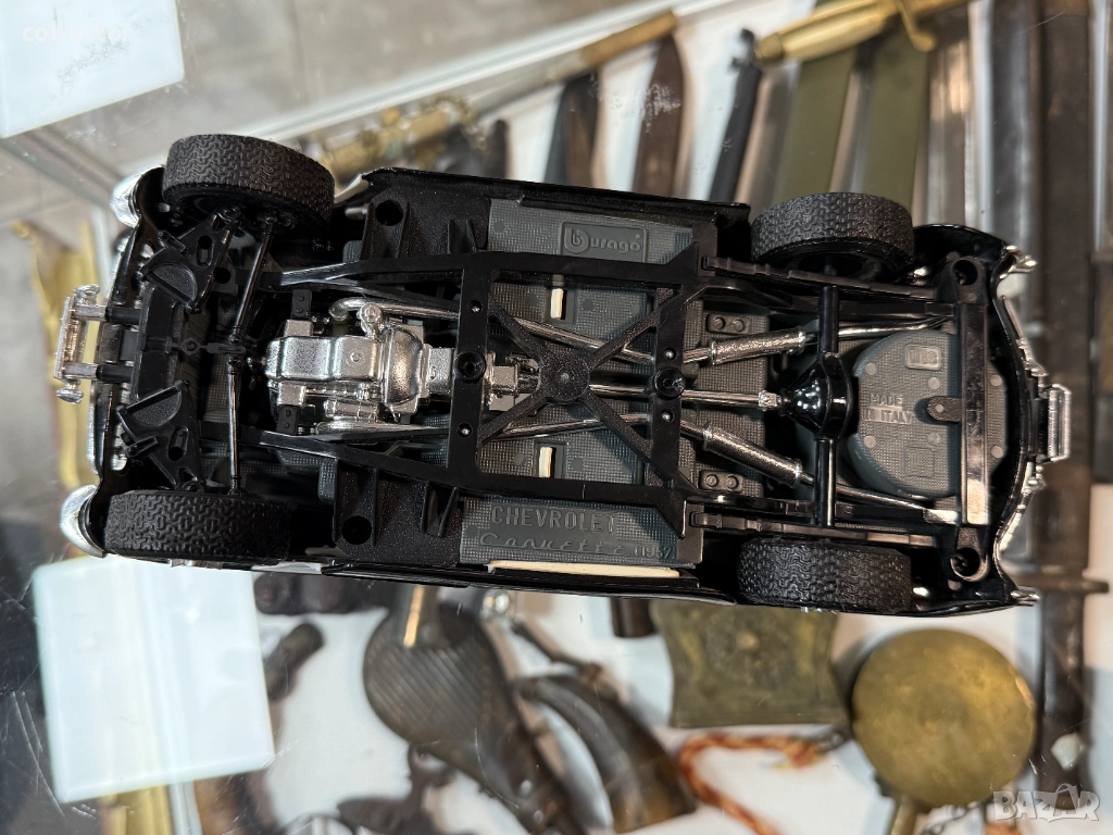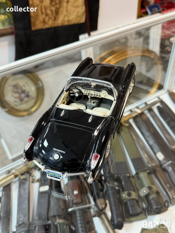 Колекционерска количка на фирма Burago - Italia, модел - Chevrolet Corvette 1957. Състояние видно от снимките, мащаб 1/18.