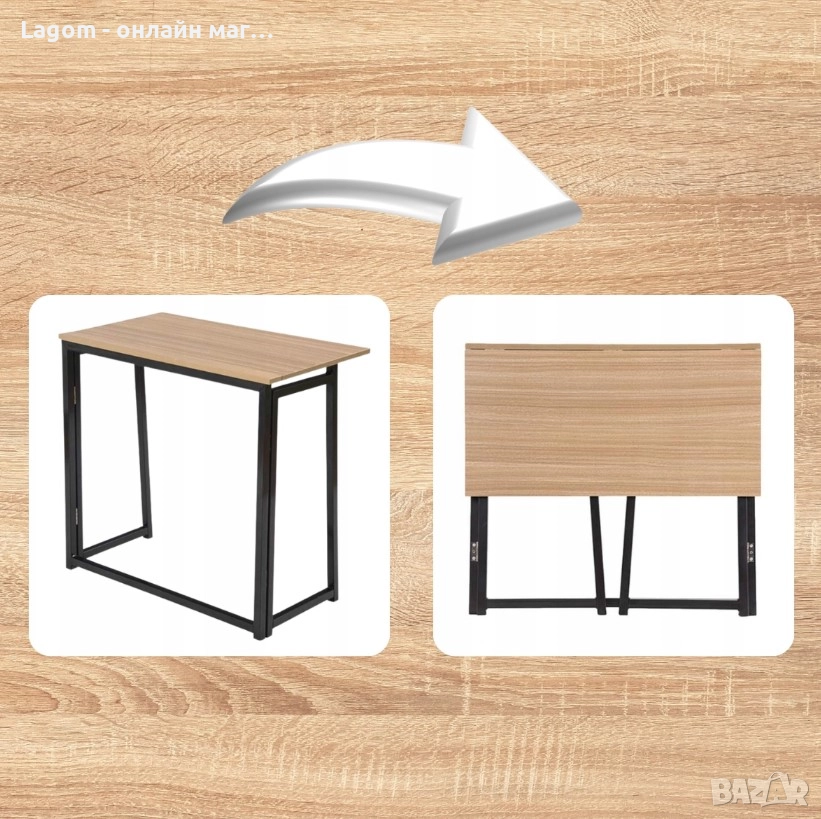 - сгъваем дизайн – идеално решение за малки пространства и апартаменти, бюрото може да се сгъне за секунди, когато не се използва