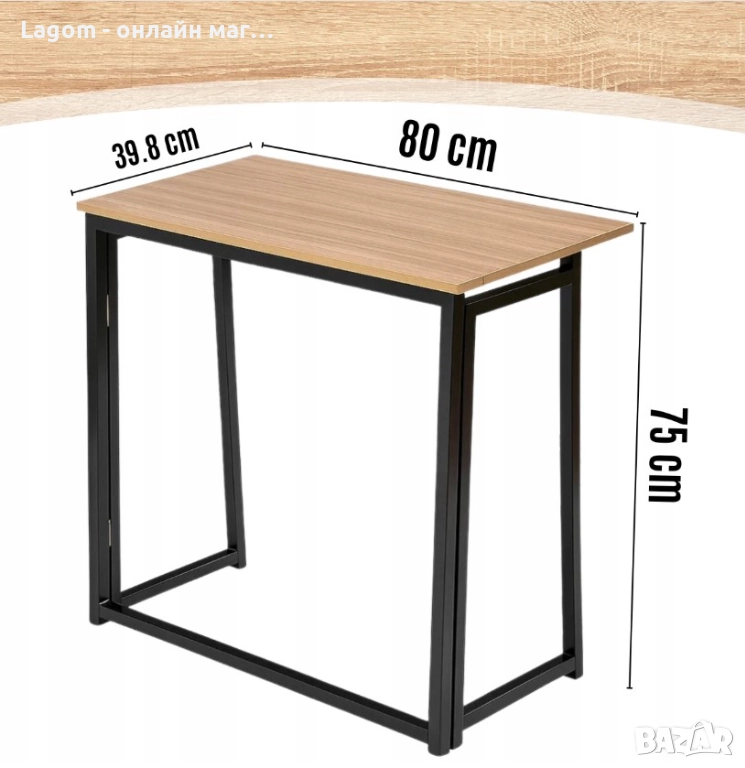 Това минималистично бюро в индустриален стил е функционално решение за малки, модерни интериори. Сгъваемият му дизайн позволява бързо сглобяване и съхранение, когато не се използва – идеално за лаптопи, учене и работа от разстояние. Леко, но стабилно, то е перфектно за домашния офис, стаята на тийнейджъра или хола.