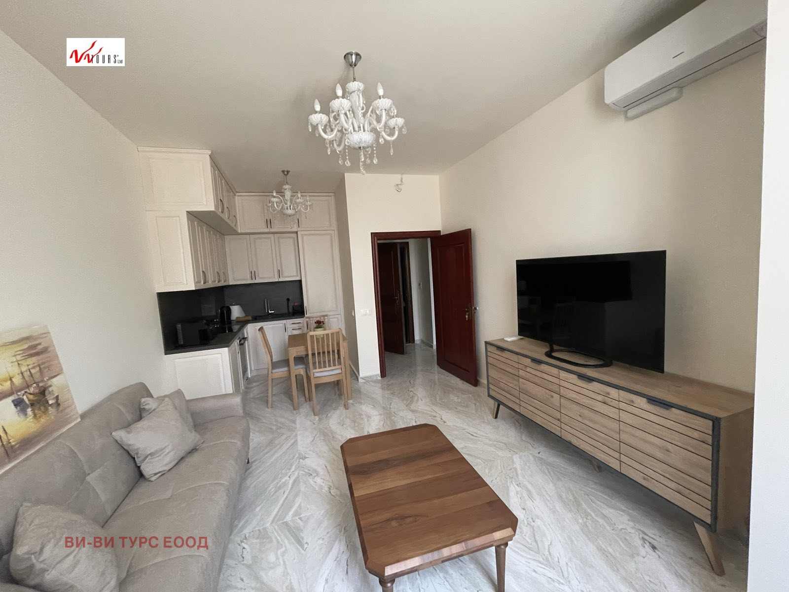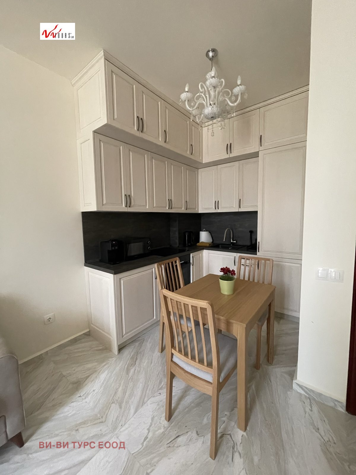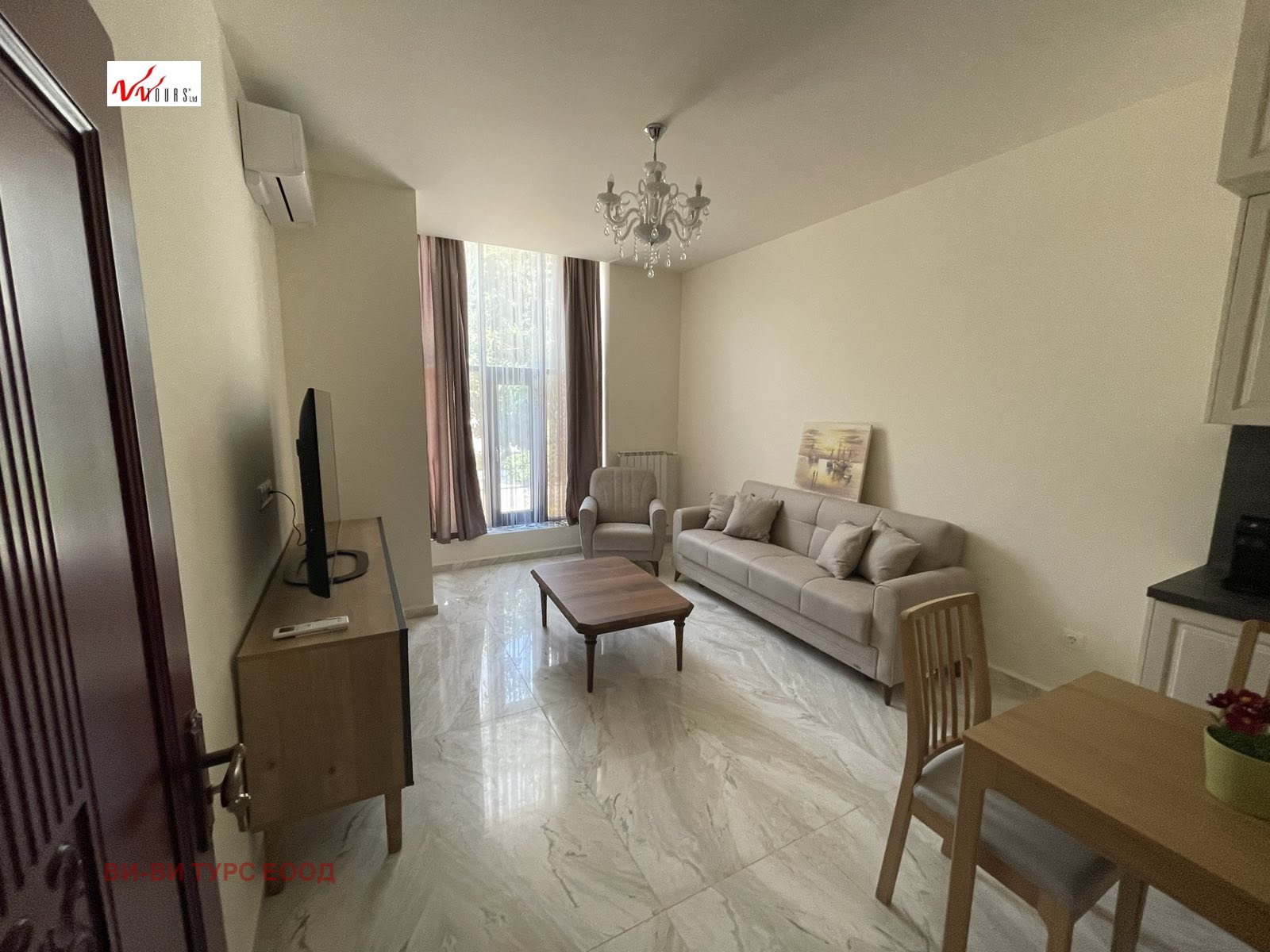 ВИ-ВИ ТУРС ИМОТИ предлага на Вашето внимание напълно обзаведен и луксозно завършен апартамент в центъра на София. Сградата е с много добре поддържани общи части. Състой се от входно антре, дневна с кухненски бокс, спалня, баня с тоалетна. Апартамента се продава с цялото налично обзавеждане. Отоплението е на ТЕЦ, сградата е с асансьор, има възможност да се наеме паркомясто. До подземните паркоместа се слиза с автомобилен асансьор.