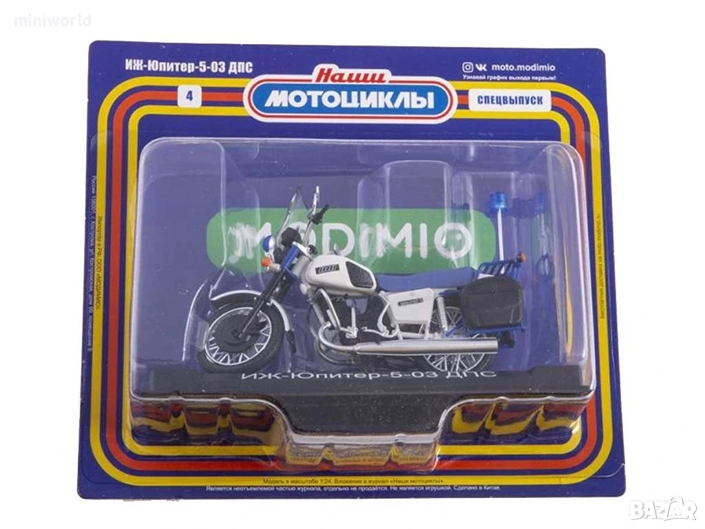 ИЖ Юпитер 5-03 ДПС полицейски мотор - мащаб 1:24 на Наши мотоциклети моделът е нов в блистер → Обява 52563523