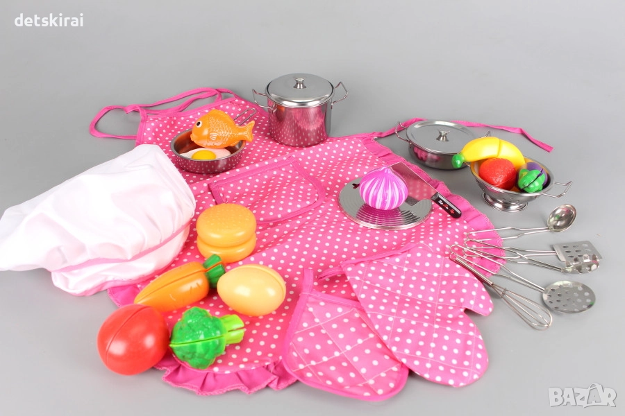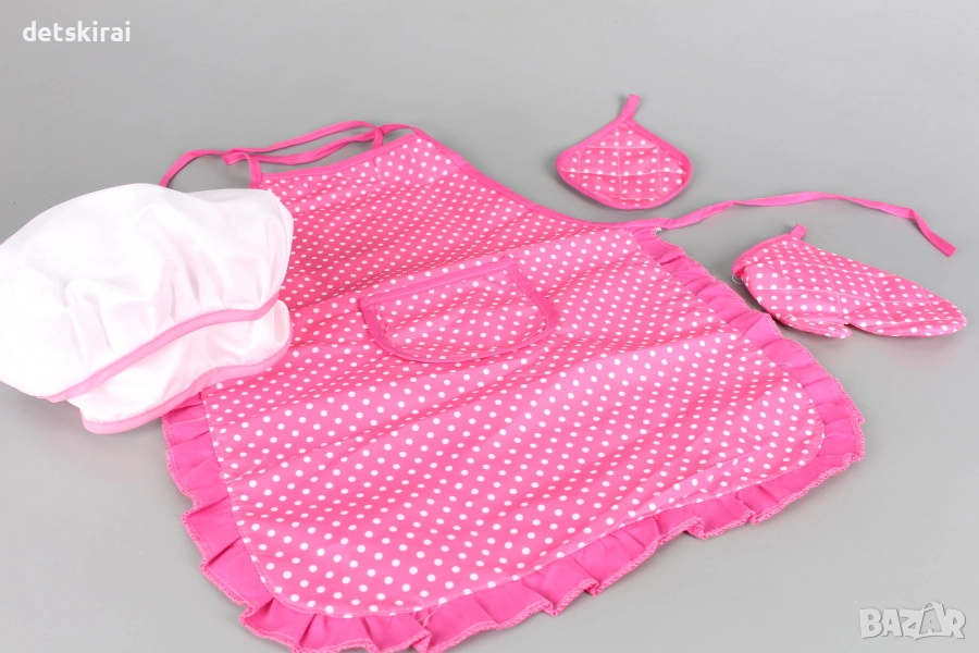 А престилката, готварската шапка, ръкавицата и ръкохватката ще предизвикат възторг у всеки малък готвач!