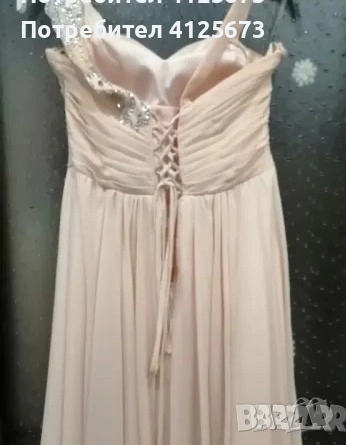 Много ефирна и елегантна рокля е, удобна за носене, същата е с връзки на гърба. С много елегантна декорация от камъни, вградени чашки, много е удобна.