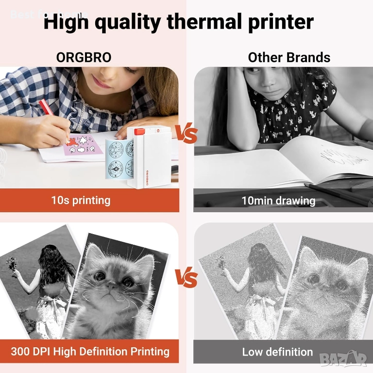 300 DPI ясен печат: Този уред за печат с висока резолюция 300 DPI осигурява ясни и стабилни резултати, които предпазват очите на децата по време на учене и игра; Със скорост на печат до 47 инча в минута (20 мм/сек), можете да завършите проектите си за етикетиране бързо.