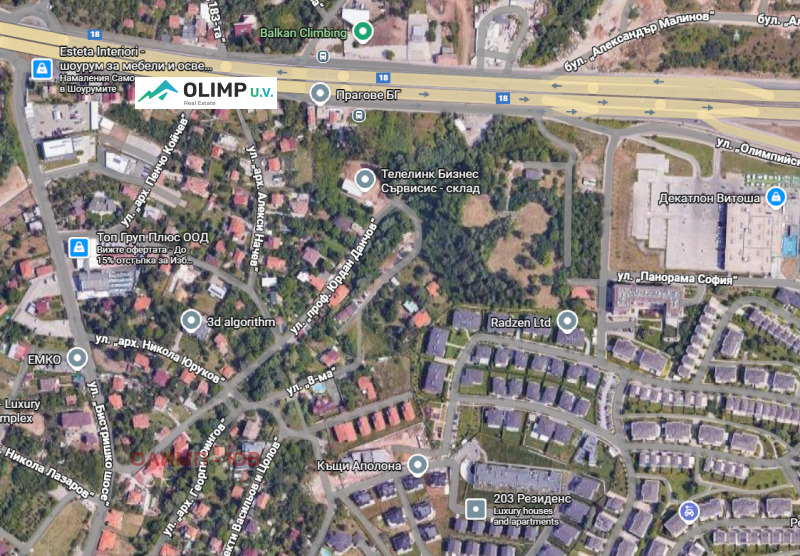 Парцелът е разположен на втора линия от Околовръстен път с директен достъп от локалното платно,в близост до търговския обект Decathlon Имотът се намира в перспективна зона с интензивно развитие, в близост до основни търговски вериги, нови жилищни комплекси и с бърз достъп до главни пътни артерии.