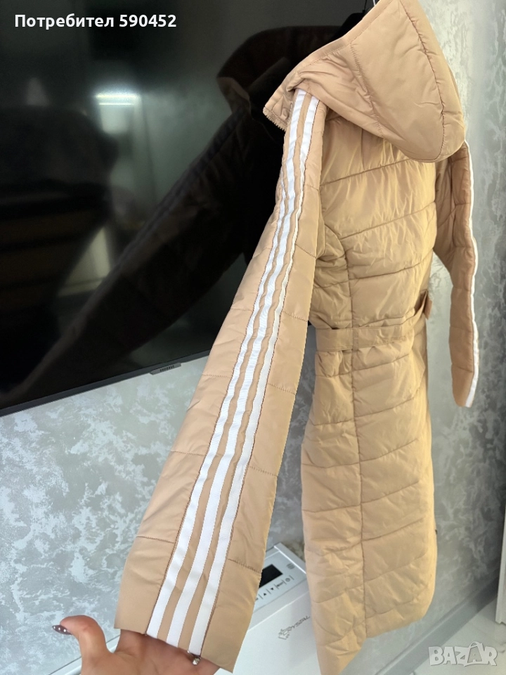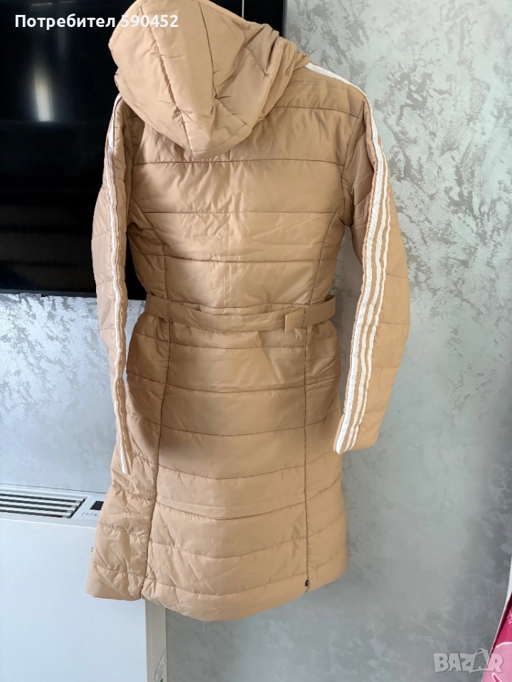 Уникално дамско яке с качулка.Оригинално е на марката Адидас.Размер Хс,цвят-беж.