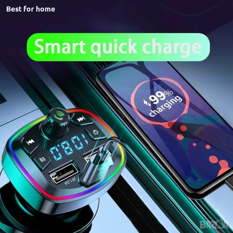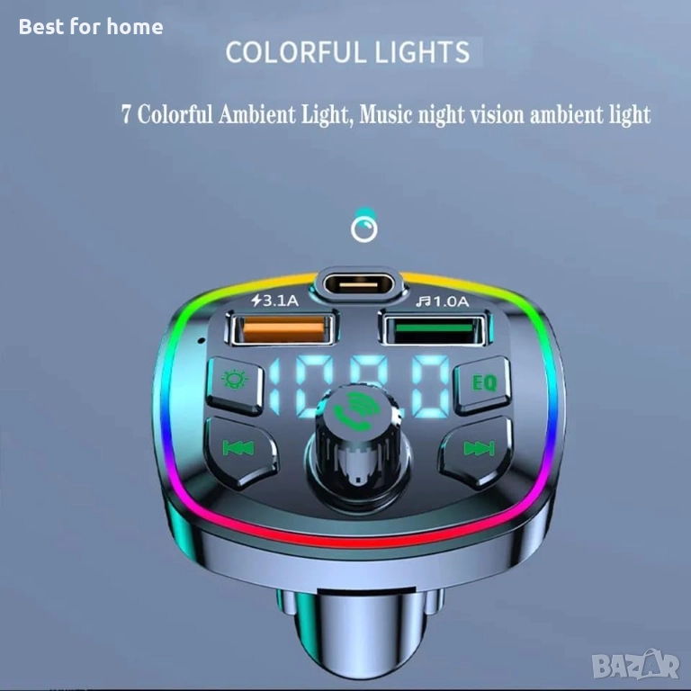 Функция 2 в 1: Това зарядно за кола разполага с вграден FM предавател, което ви позволява да се наслаждавате на музика през стереоуредбата на колата си, докато зареждате телефона си. Поддържа възпроизвеждане от TF карта и USB зареждане, което го прави универсално и удобно устройство за употреба в автомобила.