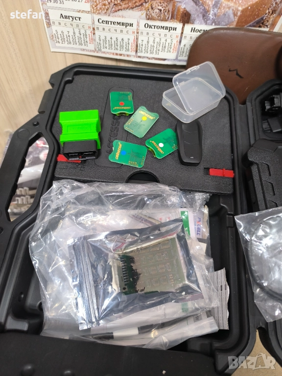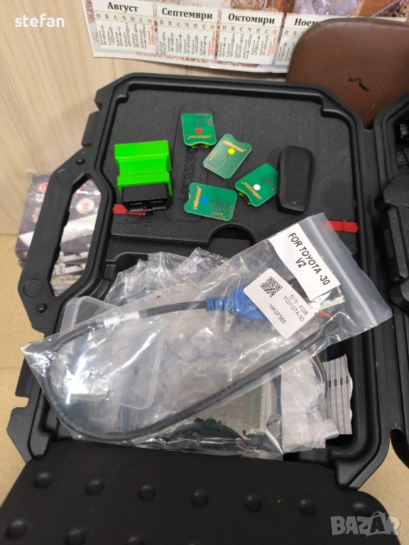 инструмента е ъпдейтван до ден днешен и има два платени ъпдейта назад работи перфектно в цената която е дадена се включват и адаптера за renault които е плащан отделно и както е показано има и всички емулатори които пак са копувани по отделно и кабелите за toyota и за всички изгубени ключове за нея и разбира се всички налични програматори за четене на памети