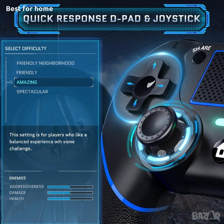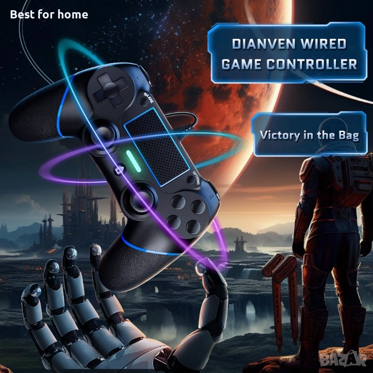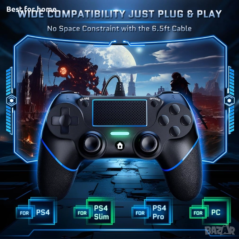 【Супер съвместимост】Кабелният контролер за PS4 е оборудван с подобрен чип, който бързо и интелигентно пасва на Playstation 4/pro/Slim/PC (Win7/8/10). Кабелният PC контролер може да се използва на различни устройства според вашите нужди (не е за MAC системи).