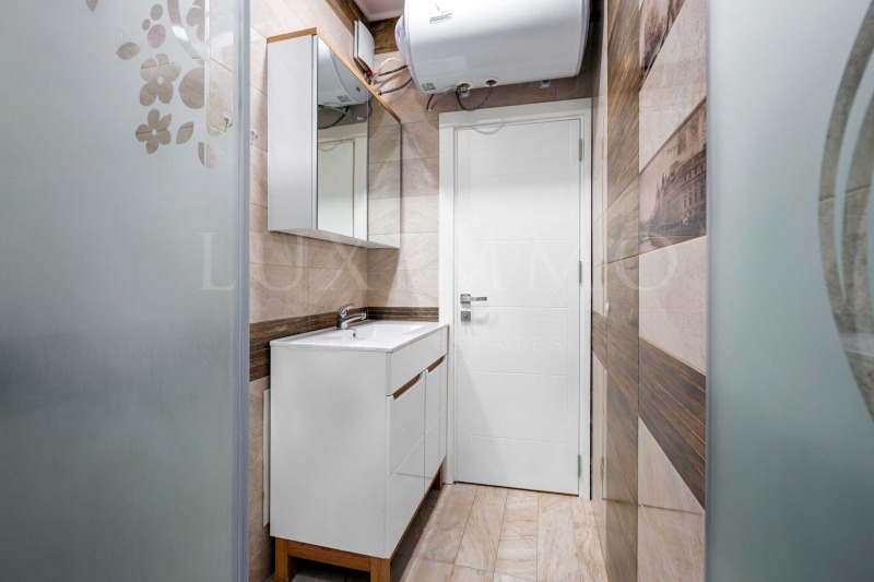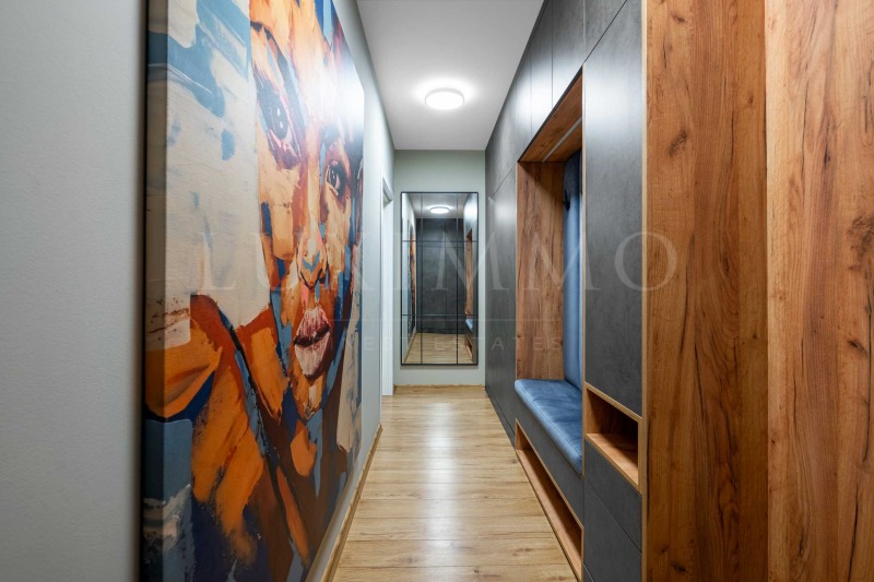 Апартаментът е напълно обзаведен, с внимание към детайла и индивидуално излъчване. Интериорът съчетава модерни цветови решения, дизайнерски осветителни тела, висококачествени мебели и декор, който създава усещане за уют и идентичност. В отлично състояние готов за нанасяне без нужда от ремонт или допълнителна инвестиция.