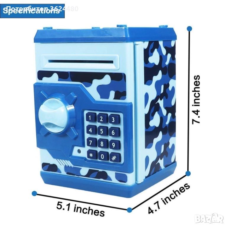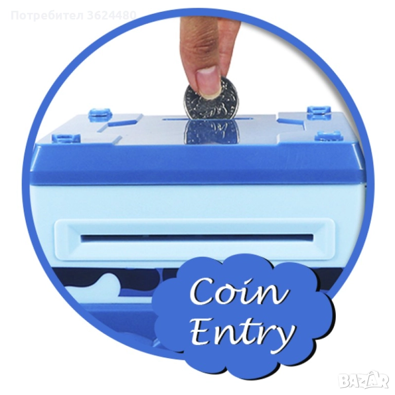 Отделение за монети: Специално отделение за съхранение на монети, което прави касичката още по-функционална.