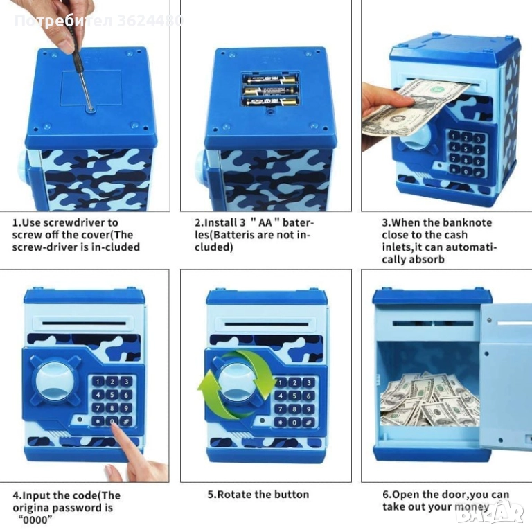 Четирицифрен ПИН код: Осигурява защита на спестяванията. Децата могат лесно да задават и променят своята парола, като развиват чувство за отговорност.