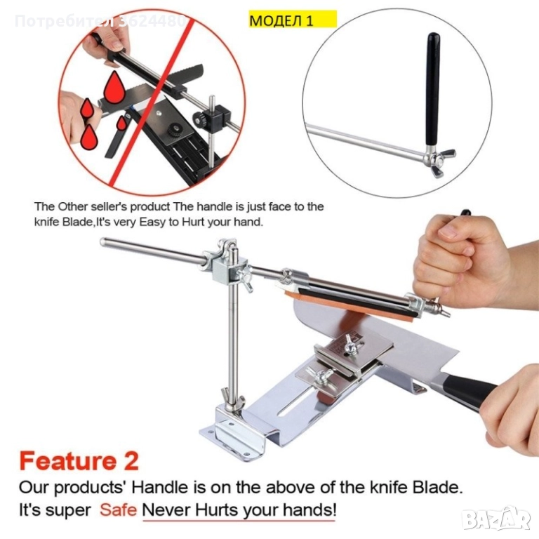 С професионалното точило за ножове от висококачествена стомана ще забравите за затъпените ножове в кухнята и няма да се притеснявате. Този иновативен уред се поставя върху кухненския плот и заточва перфектно за секунди всякакви видове остриета – гладки, назъбени, дори и най-захабените. Ъгълът на заточване се регулира от 5 до 9 градуса. Изключително удобен и стабилен, уредът няма да се пързаля по кухненския ви плот докато точете ножовете си. Може да се използва и за остриетата на ножици. Уредът има 4 плочки Грит 120, 320, 600 и 1500 за заточване и така само за няколко секунди ще имате остри като бръснач остриета, готови за работа. Направен изцяло от висококачествена стомана, точилото никога няма се повреди и ще издържи с години.