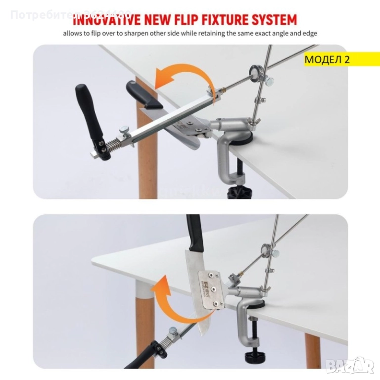 Фиксиран ъгъл на заточване: Позволява постоянна и прецизна работа, идеална за всякакъв вид ножове.
