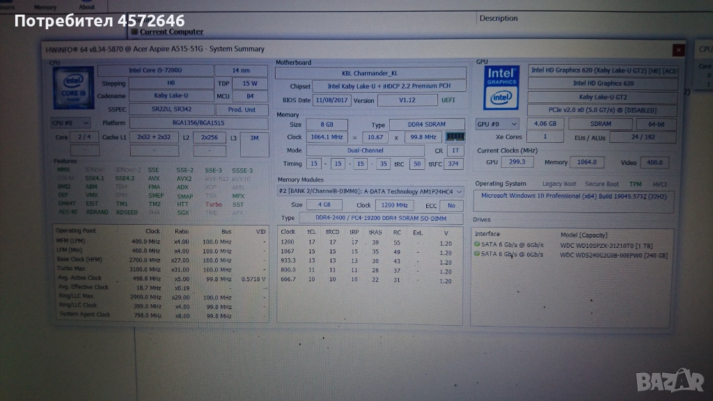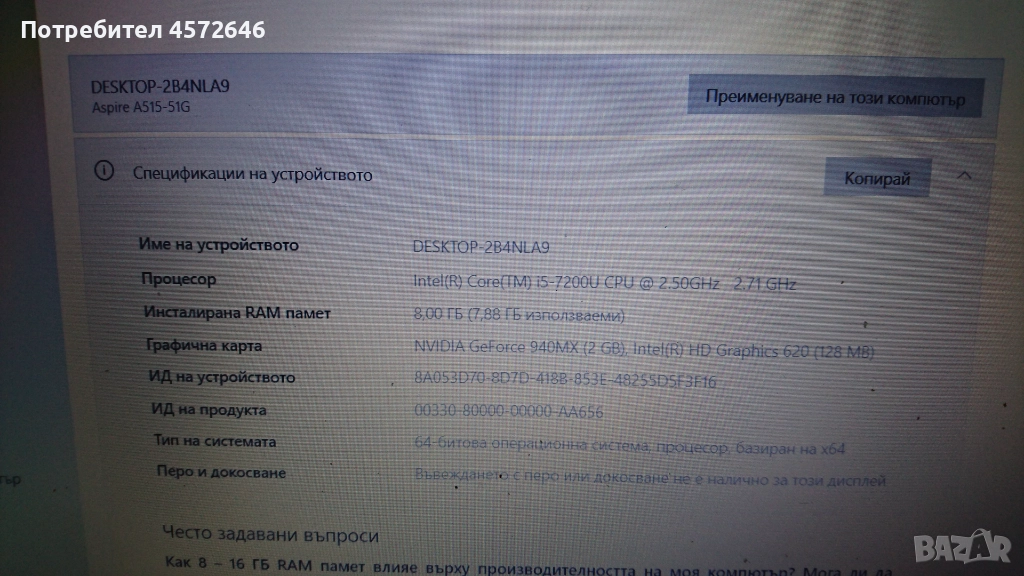 Лаптоп Acer Aspire A515-51G → Обява 52565596