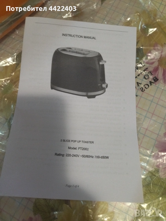 Чисто нов тостер,с надпис от вътрешната страна