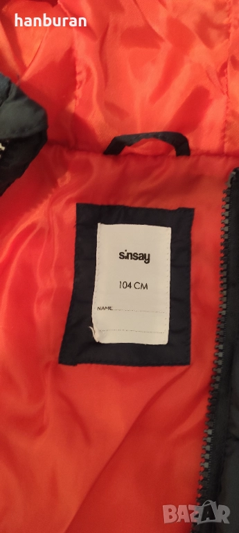 Детско тъмносиньо яке, марка sinsay, размер 104. В отлично състояние, без забележки.