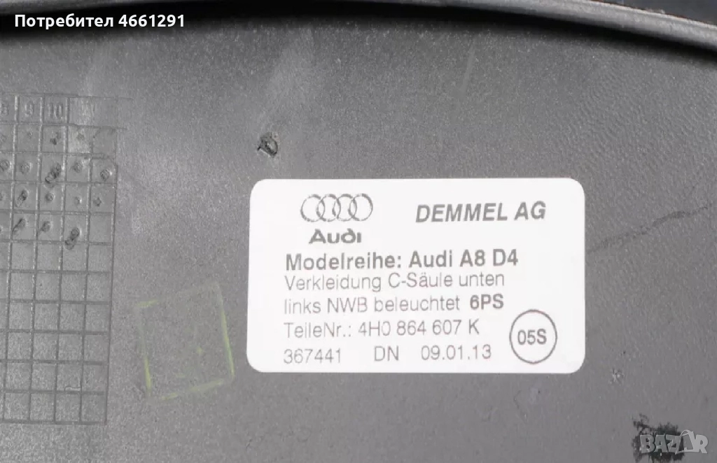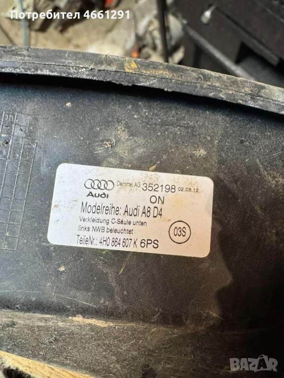 Задна лява кора на ляв вътрешен праг на Ауди Audi A8 D4 H4 само за 50Eur. 4h0864607k → Обява 52566555