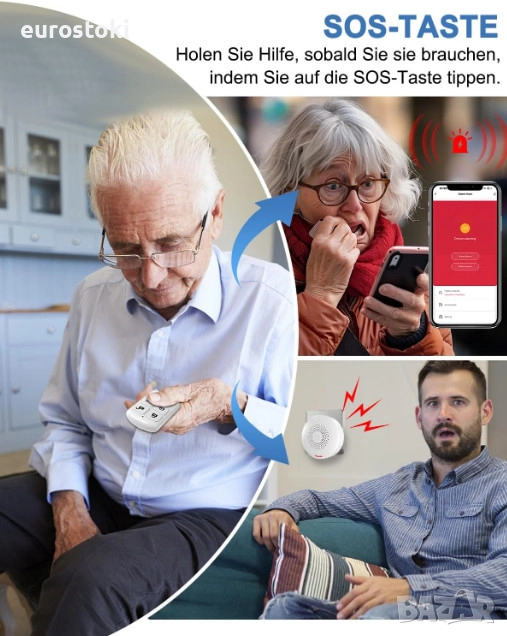 Противокрадство и аварийни ситуации. Със смарт алармената система SanJie ще бъдете уведомени незабавно, когато врати или прозорци се отворят. Чрез свързване на всички WiFi алармени компоненти, вие имате пълната безопасност на дома си под контрол. Когато възрастните хора се нуждаят от помощ, те могат да натиснат бутона за спешни случаи (SOS), за да задействат алармата бързо и да получат помощ възможно най-скоро.