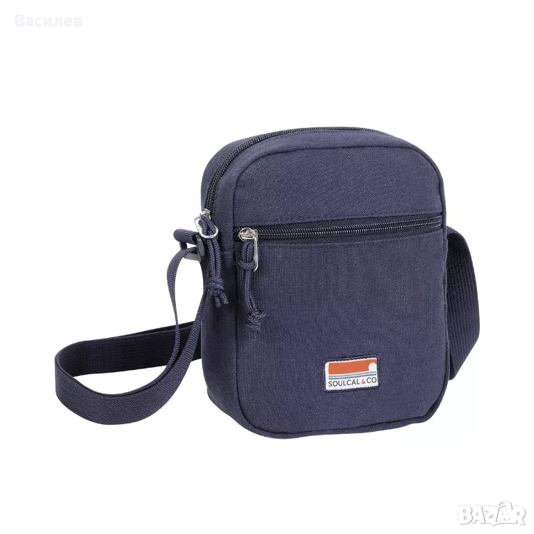 Нова, оригинална, мъжка чанта тип паласка Soulcal, внос Англия. Материал памук, цвят син, лого на марката. Подходяща за носене през рамо. Ориентировъчни размери: