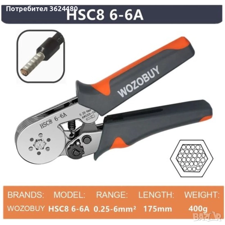 1 х Шестоъгълни кримпинг клещи HSC8 6-6A: