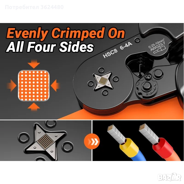 Кримпинг клещи HSC8 6-4A – 1 брой: