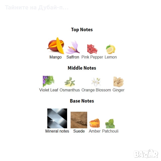 Върхови нотки: Шафран, Лимон, Розов пипер, Манго