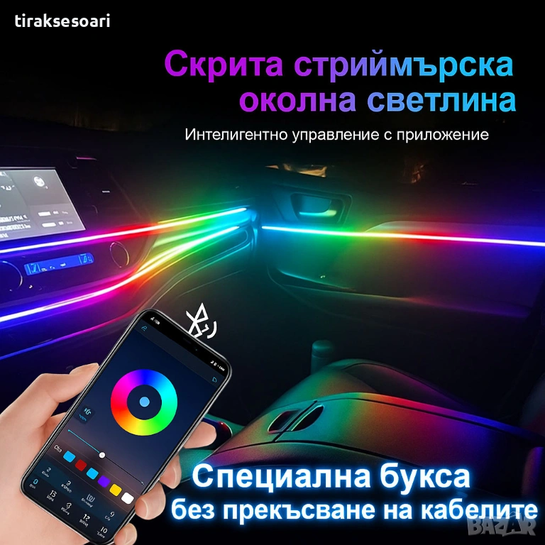 rgb осветление кола, интериорно лед осветление, led ленти автомобил, app rgb light, 6in1 led, 10in1 led, 14in1 interior lights, 18in1 interior lights, автомобилно амбиентно осветление, музикално лед осветление, 12v rgb ленти