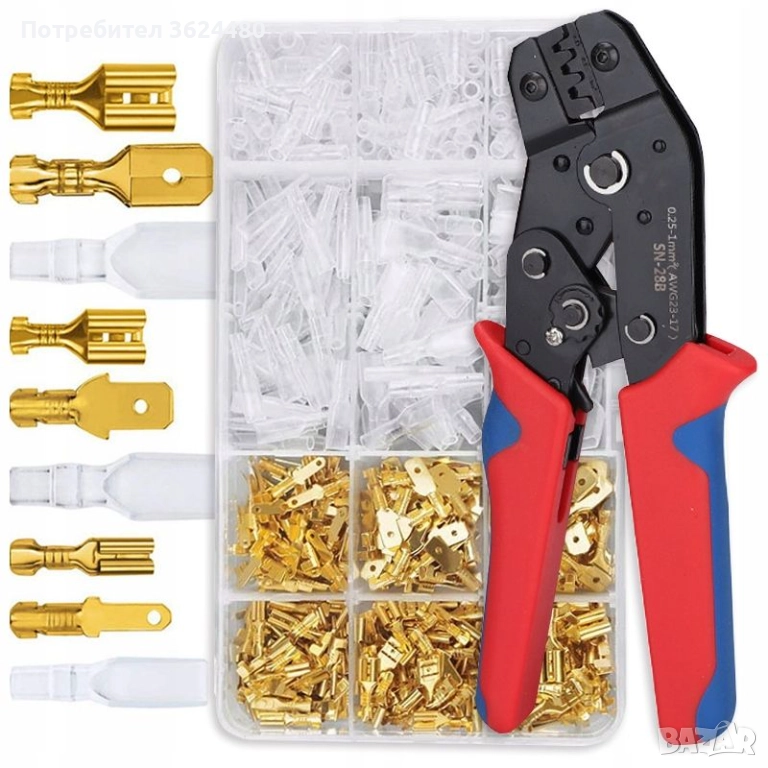 Клещи за кримпване SN-48B с органайзер и 315 броя кабелни обувки и изолатори