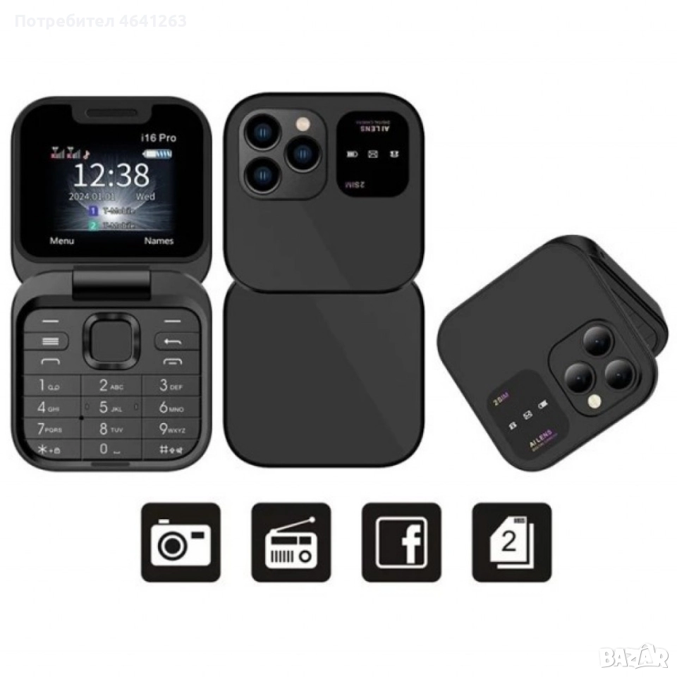 Сгъваем мобилен телефон i16 Pro – 2 SIM, камера, фенерче, FM радио, снимка 1 - Телефони с две сим карти - 52567397 Сгъваем мобилен телефон i16 Pro – 2 SIM, камера, фенерче, FM радио, снимка 2 - Телефони с две сим карти - 52567397 Сгъваем мобилен телефон i16 Pro – 2 SIM, камера, фенерче, FM радио, снимка 3 - Телефони с две сим карти - 52567397 Сгъваем мобилен телефон i16 Pro – 2 SIM, камера, фенерче, FM радио, снимка 4 - Телефони с две сим карти - 52567397 Сгъваем мобилен телефон i16 Pro – 2 SIM, камера, фенерче, FM радио, снимка 5 - Телефони с две сим карти - 52567397 Сгъваем мобилен телефон i16 Pro – 2 SIM, камера, фенерче, FM радио, снимка 6 - Телефони с две сим карти - 52567397 Сгъваем мобилен телефон i16 Pro – 2 SIM, камера, фенерче, FM радио, снимка 7 - Телефони с две сим карти - 52567397 Сгъваем мобилен телефон i16 Pro – 2 SIM, камера, фенерче, FM радио, снимка 8 - Телефони с две сим карти - 52567397 Сгъваем мобилен телефон i16 Pro – 2 SIM, камера, фенерче, FM радио, снимка 9 - Телефони с две сим карти - 52567397 1/9