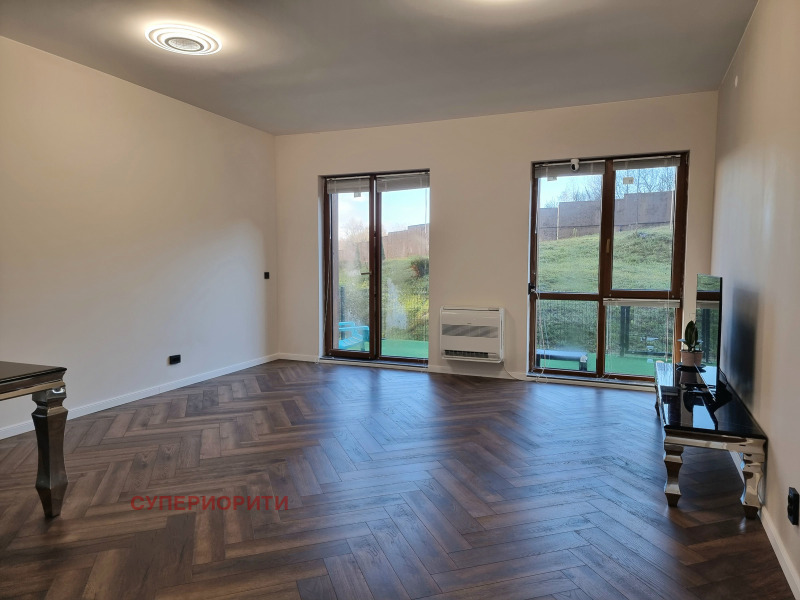 Модерен апартамент в Банско, кв. Грамадето. Комплекс Crown, партер/сутерен 145 м2 - 3 стаи (38м2 дневна с кухня, спалня 17м2 и 15м2) 2 бани (15м2 и 5м2), гардеробна, тераса 20м2, коридор и общи части. Цената включва складово помещение от 10 м2 в съседния блок. Частично обзаведен. Източно изложение.