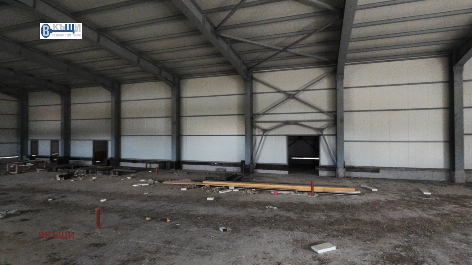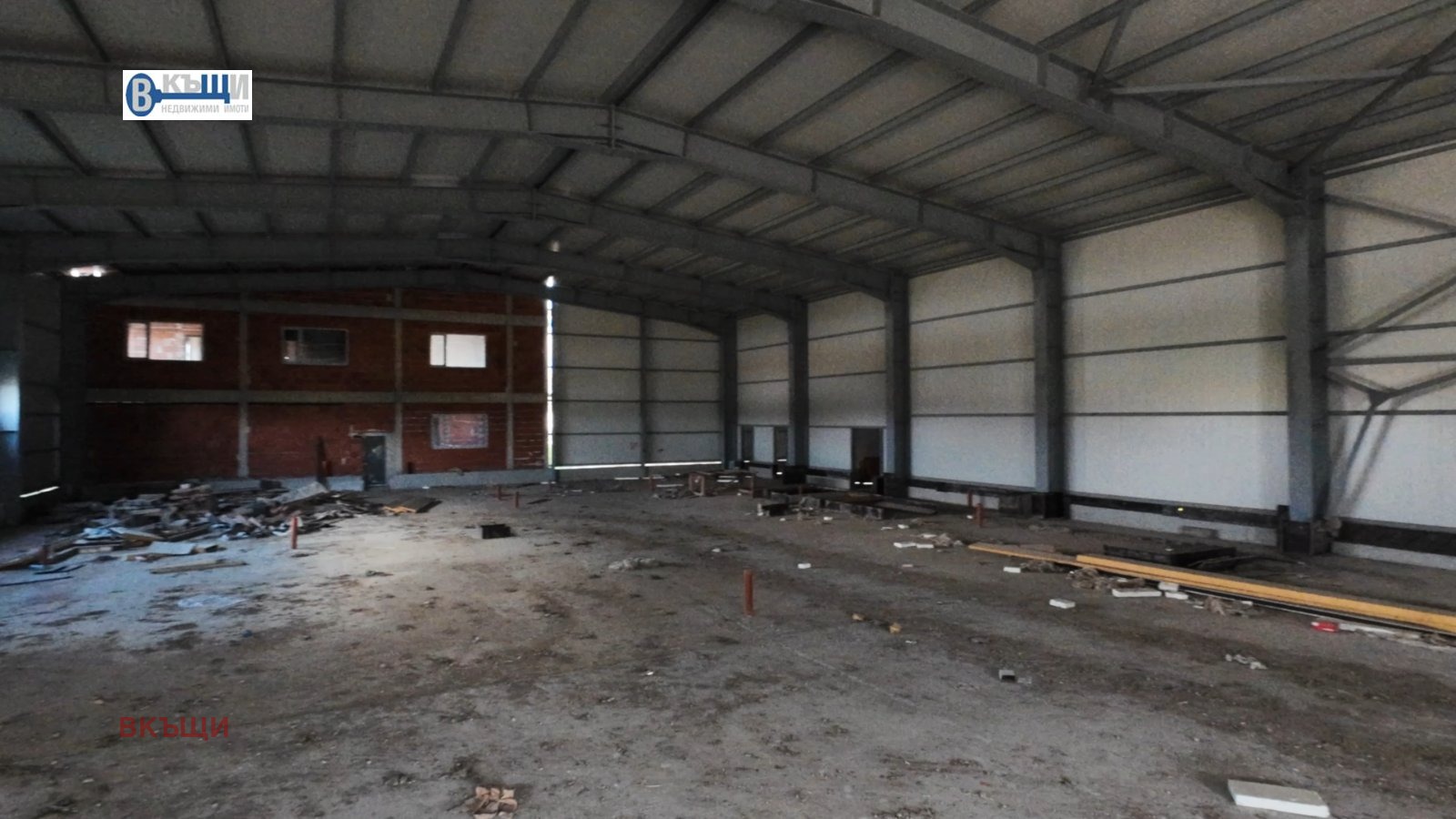 Конструкция: метална с бетонова основа, подходяща за различни видове производствена или складова дейност