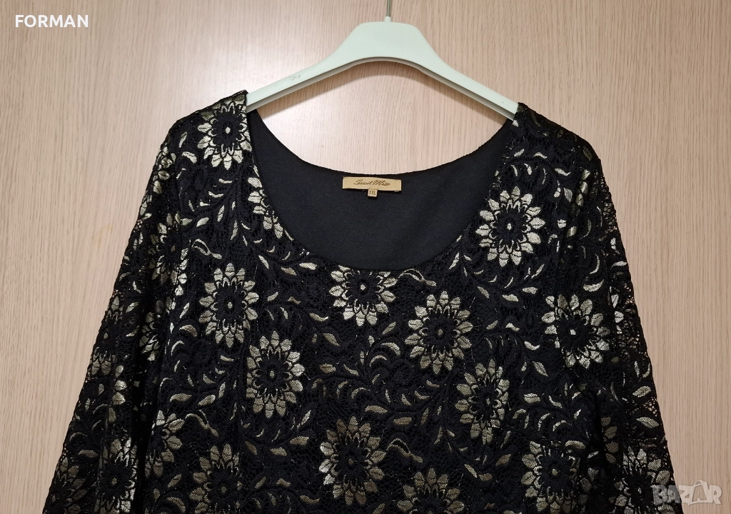 ИЗКЛЮЧИТЕЛНО КРАСИВА черна дантелена рокля на златисти цветя → Обява 52568885