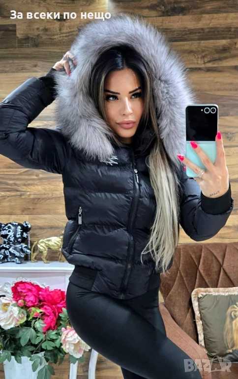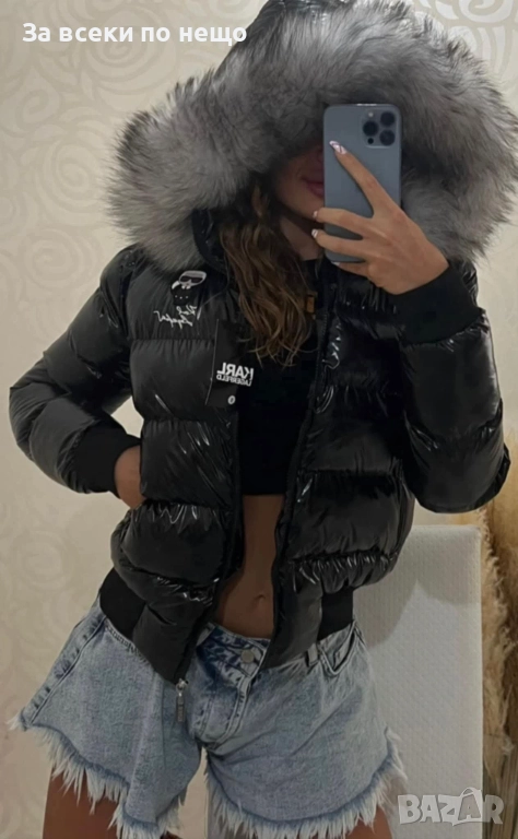 Karl Lagerfeld Дамско Зимно Яке С Естествен Пух На Качулката - Лачени И Матови Код W.S.O.17 → Обява 52569017