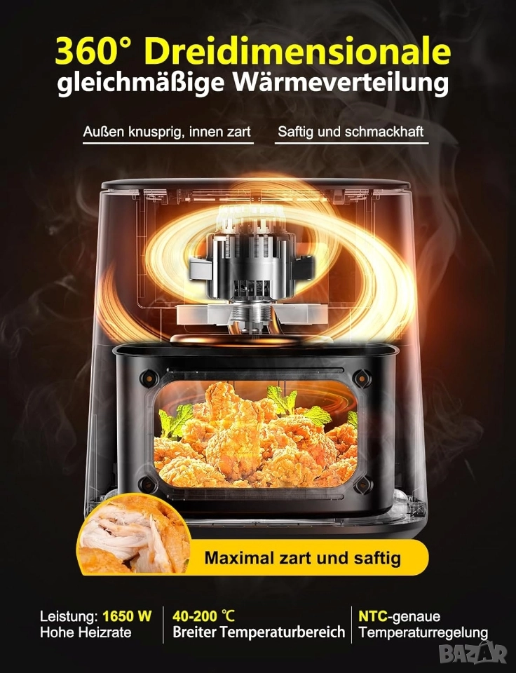 еър фрайър с прозорец, бързо готвене, енергоспестяващ уред.