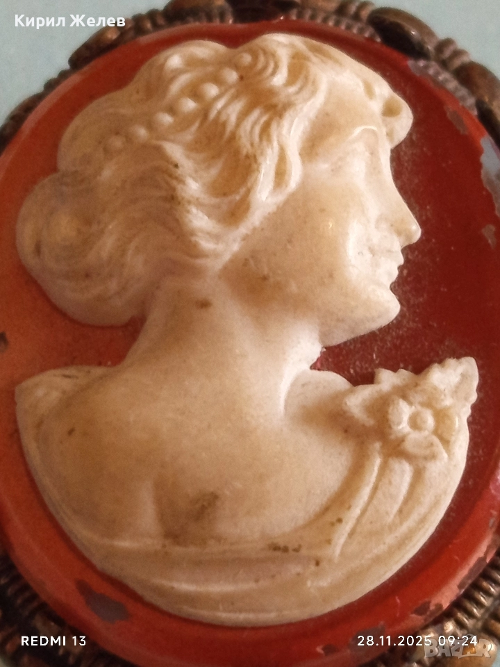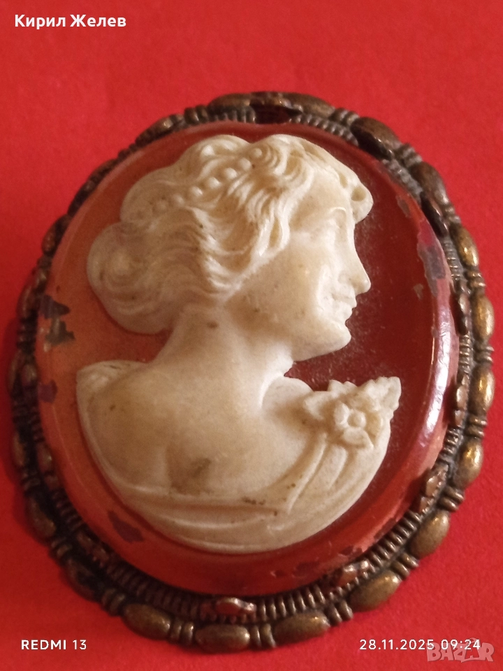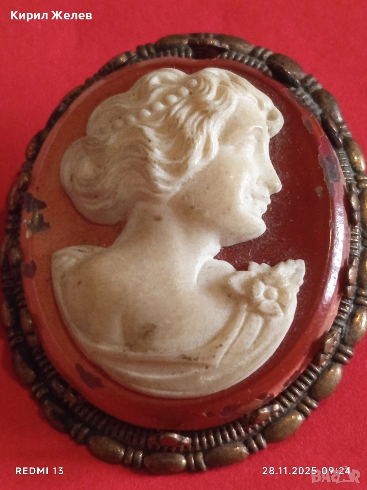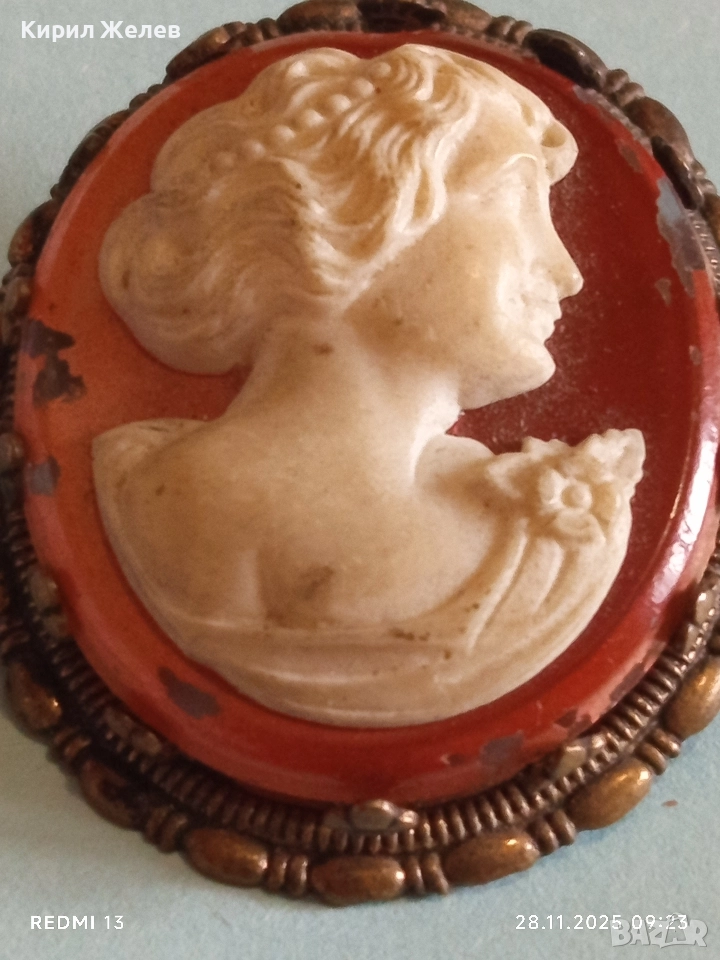 Винтидж Викториански стил КАМЕЯ с СЕДЕФ прекрасна бронзова стар пендант 49535