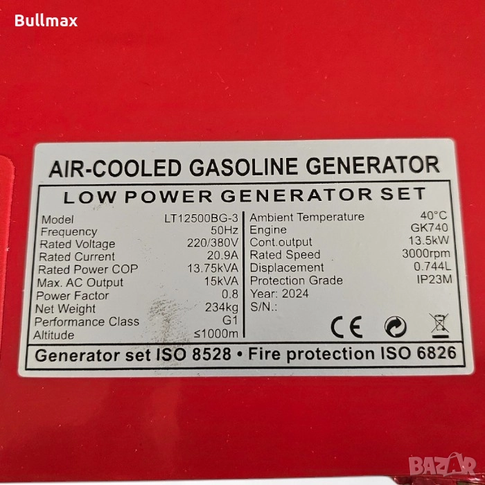 С тегло от 234 кг и компактни размери (870х630х990 мм), BULLMAX LT-12500BG-3 е готов за незабавна употреба и предварително зареден с масло. Ако търсите мощен, надежден и лесен за работа бензинов генератор, BULLMAX LT-12500BG-3 е идеалният избор!