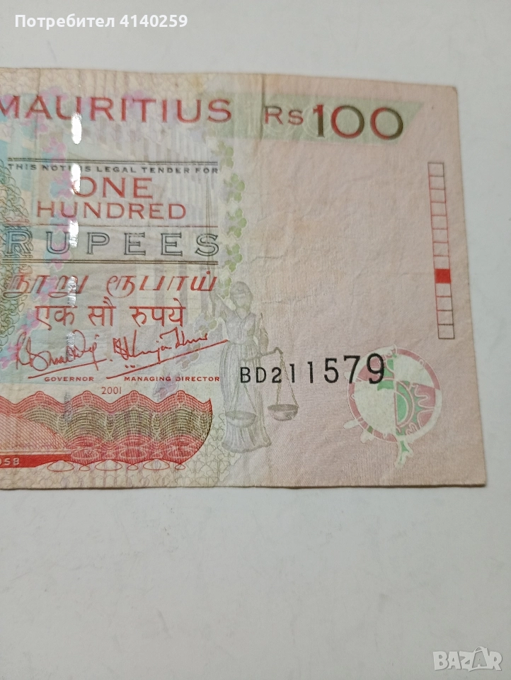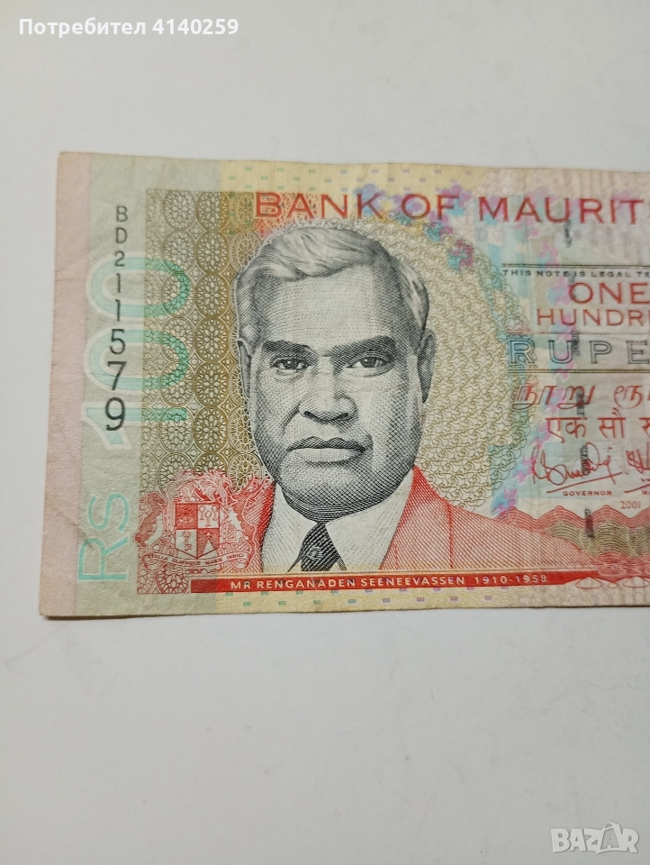 ОСТРОВ МАВРИЦИЙ БАНКНОТА 100 РУПИИ 2001 Г → Обява 52570145