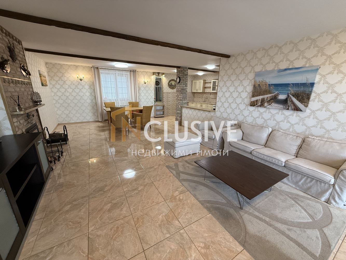 - Обособени кътове: трапезария, зона за релакс, зона около камината