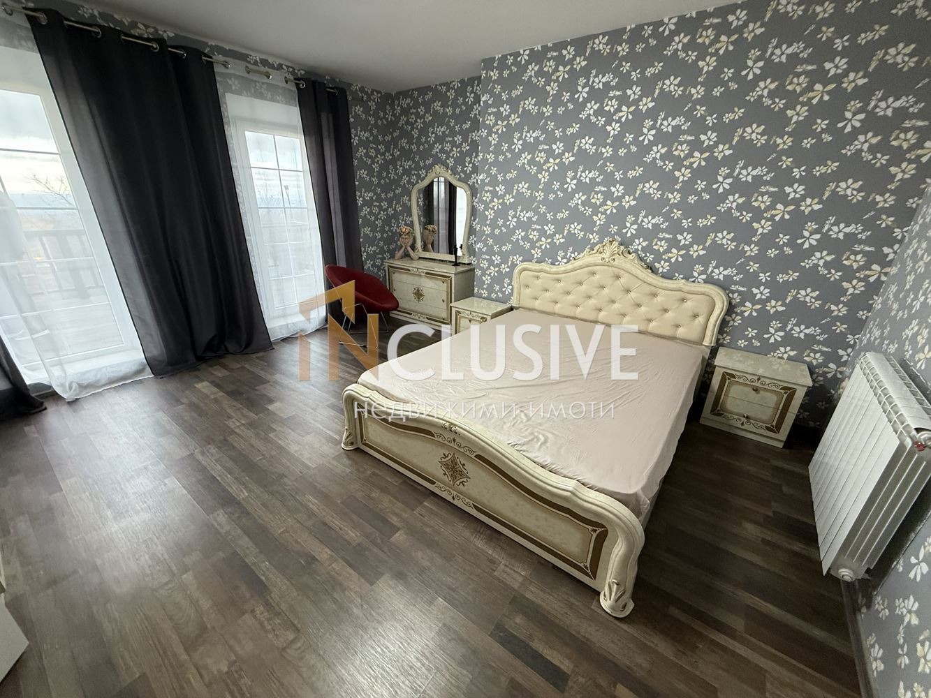 - Просторна и светла дневна с големи френски прозорци