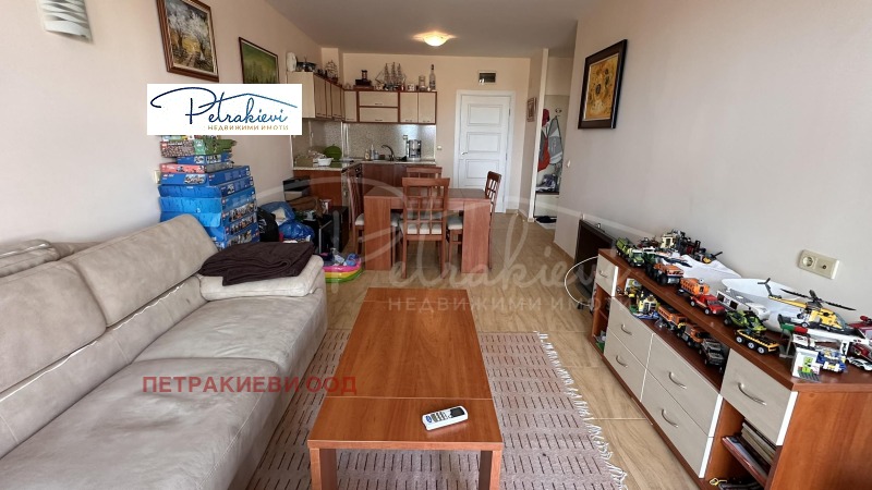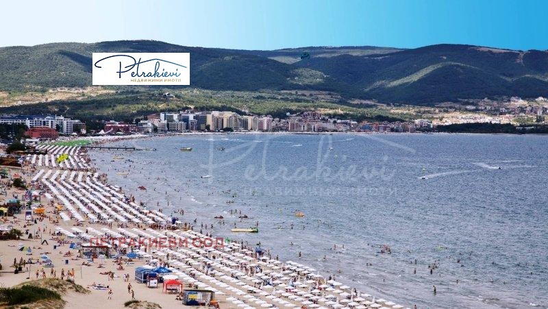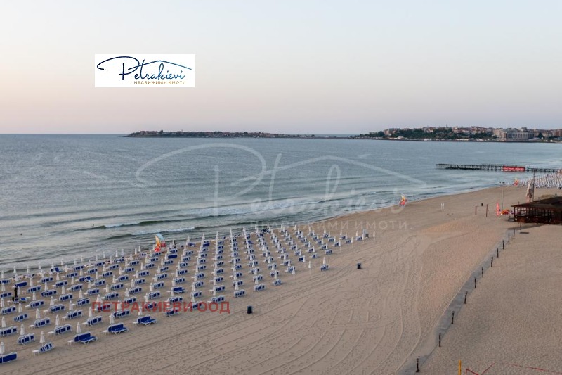 Петракиеви недвижими имоти представя двустаен апартамент на първа линия море, с морска гледка в най - големия български морски курорт - Слънчев бряг. Привелигерована локация само на няколко крачки от широка плажна ивица с фин златист пясък, обгърната от природно оформени пясъчни дюни, които носят усещане за хармония между море и природа. Плажът е отлично поддържан и оборудван с шезлонзи и чадъри. В същото време на пешеходно разстояние от центъра на курорта и на романтична разходка от живописния и исторически град Несебър. В непосредствена близост има разнообразни магазини, заведения, аптеки, целогодишен супермаркет Младост и много други.