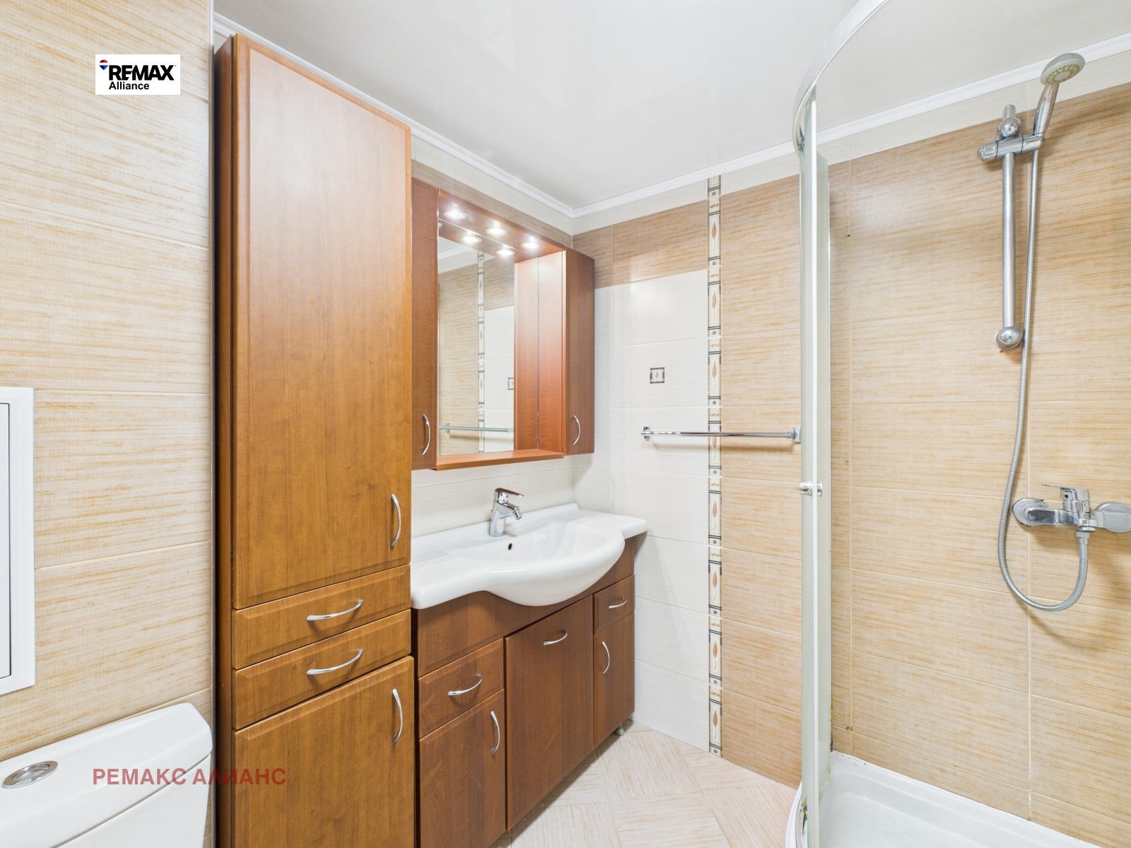 - Баня с тоалетна и душ кабина